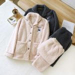 | nameOriginal | Embroidered bunny flannel couple pajamas set autumn and winter velvet padded lapel cardigan warm men's and women's home clothes |