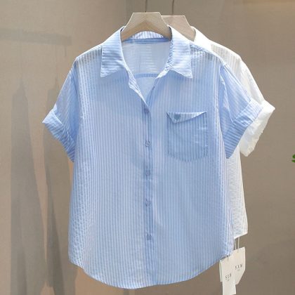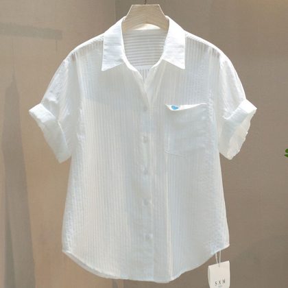 | nameOriginal | Embroidered Love Single Pocket Design Sense Vertical Stripe Thin Short-sleeved Shirt Casual Women's Shirt 2024 Summer |