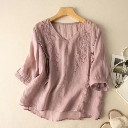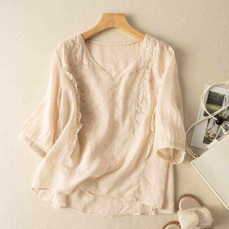 | nameOriginal | Embroidered pure cotton top loose temperament literary retro linen shirt thin and versatile 2023 summer new ethnic style |