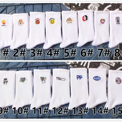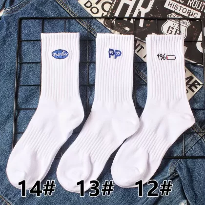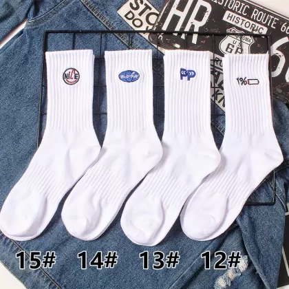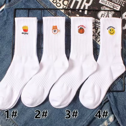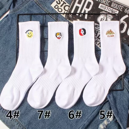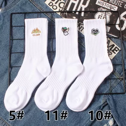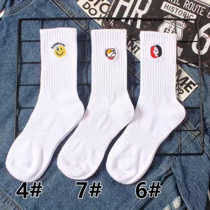 | nameOriginal | Embroidered spring and summer socks men's mid-calf socks women's long socks ins trend high-top white sports sweat-absorbent cotton socks 4 pairs of trendy socks |