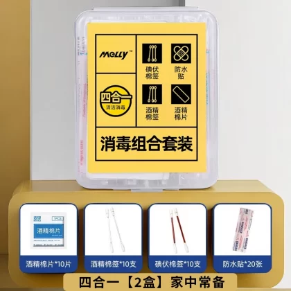 | nameOriginal | Emergency disinfection four-piece set of disposable 75% alcohol cotton pads, iodophor cotton swabs, portable hemostatic medical box |