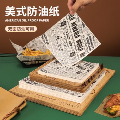 | nameOriginal | English newspaper oil-proof paper Hamburger fried fried chicken oil-absorbing oil-proof paper snack fries pad paper English newspaper tray paper |