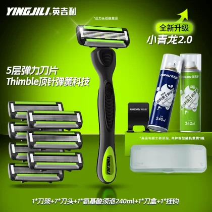 | nameOriginal | English Xiaoqinglong razor manual razor men's non-geely five-layer head foam beard cream set |