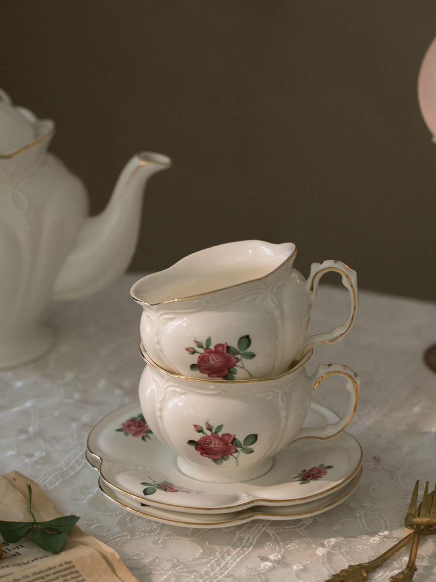 | nameOriginal | EQ4F French retro rose afternoon Black Tea Cup Saucer Tea Set coffee cup saucer European court style new bone ceramic |
