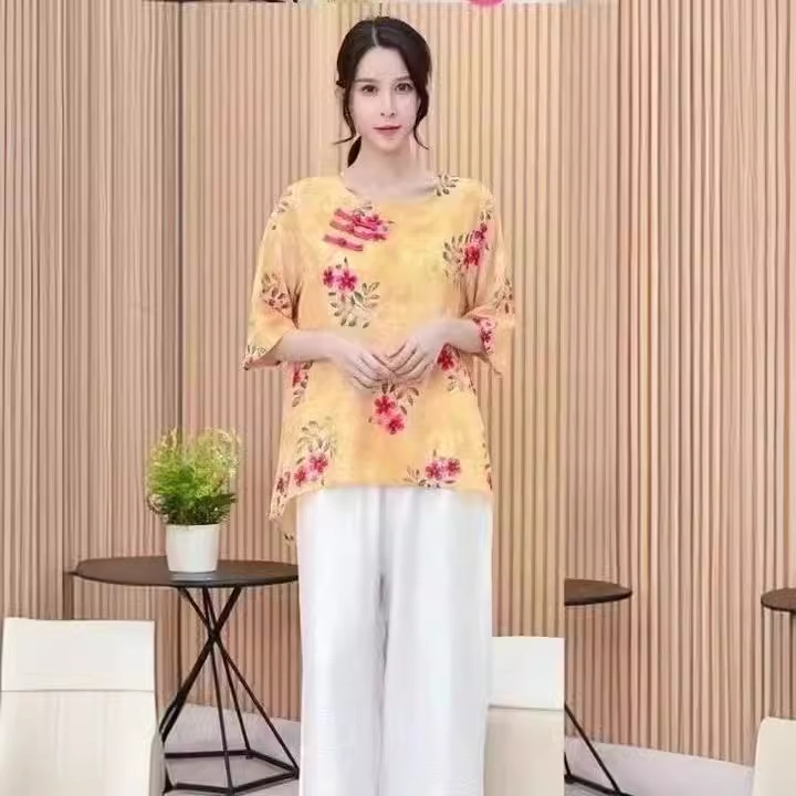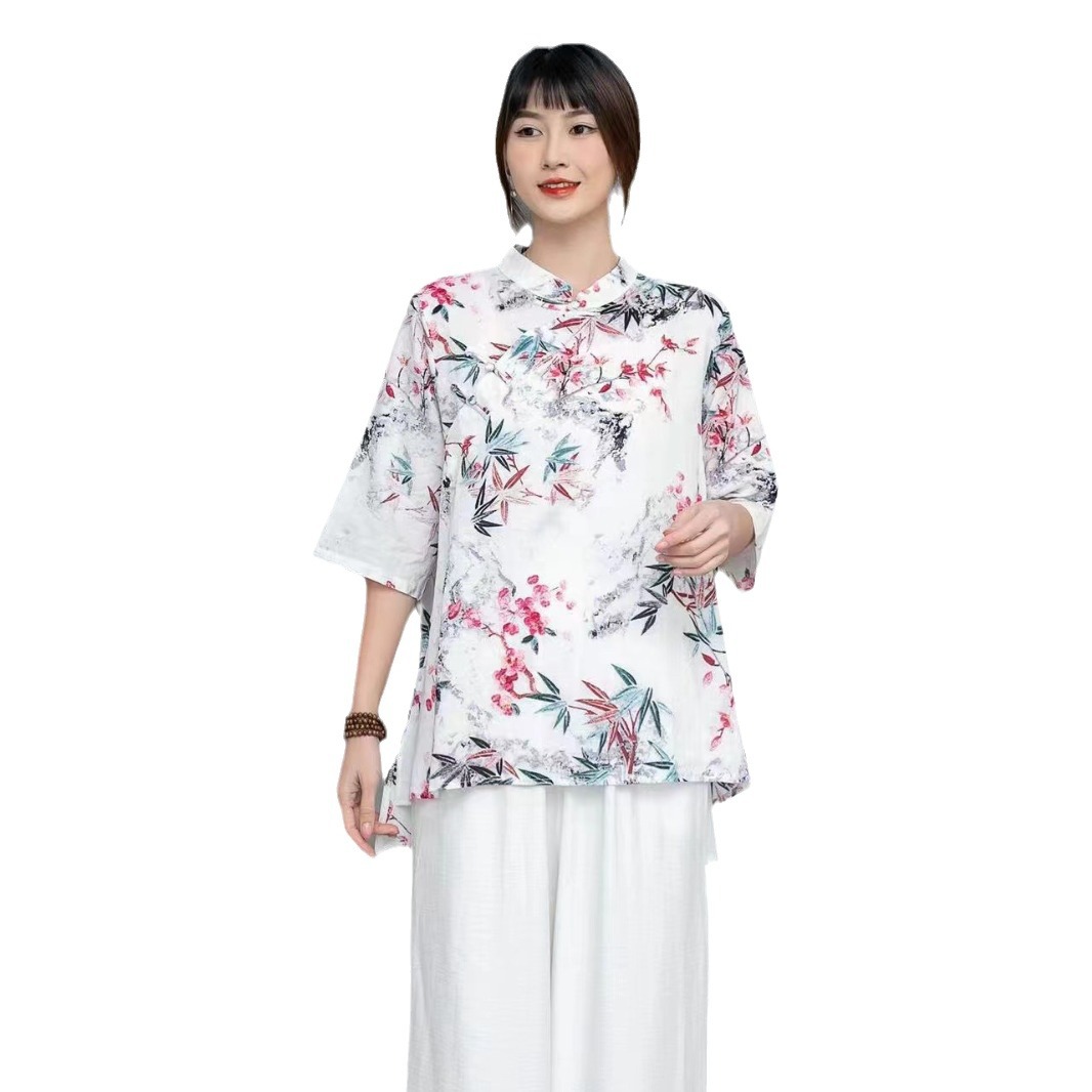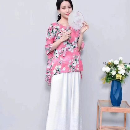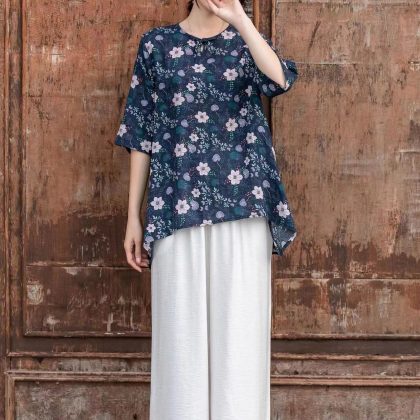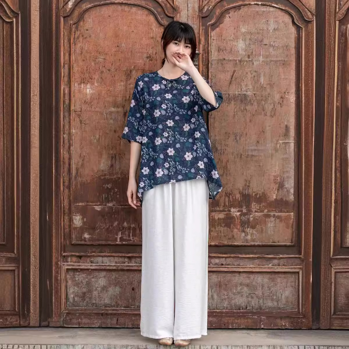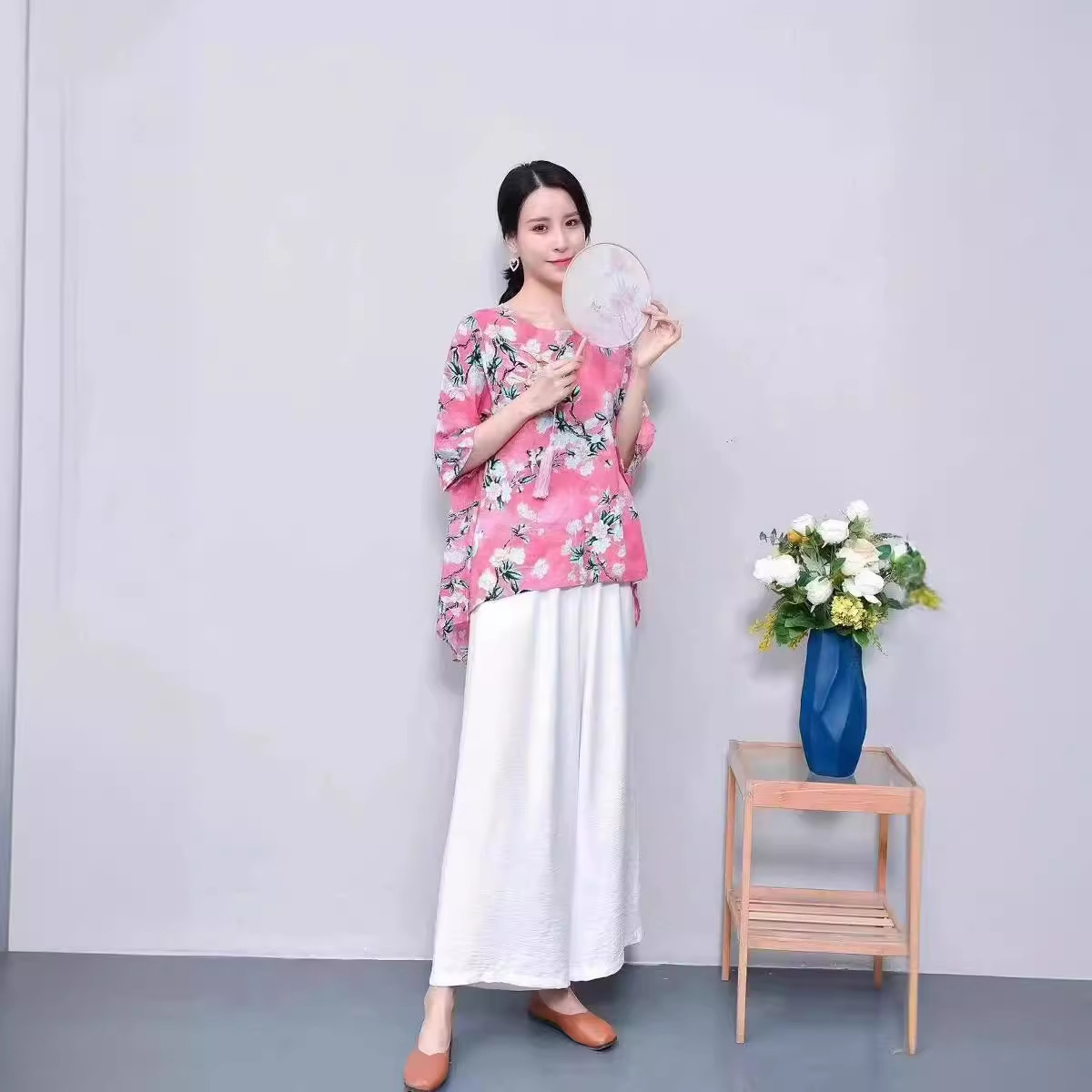 | nameOriginal | Ethnic Style Cotton Linen Casual Loose Slimming Top Printed Lace-up Women's Casual Loose Breathable Short-sleeved T-shirt for Women |