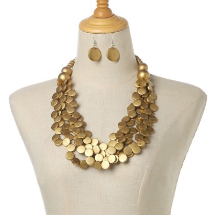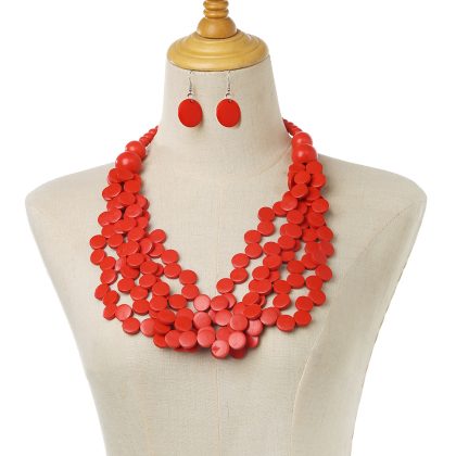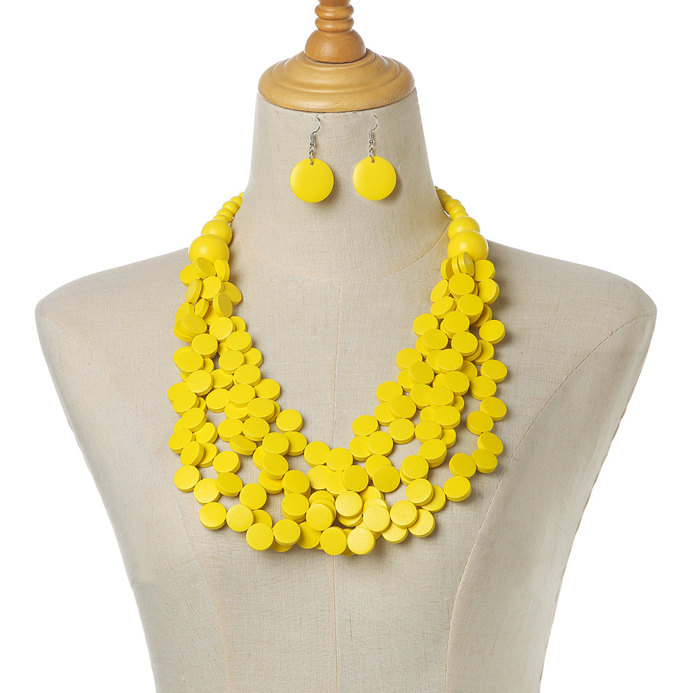 | nameOriginal | Ethnic style irregular wood beaded multi-layer necklace earrings suit sweater chain banquet jewelry necklace |