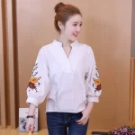 Ethnic style loose casual three-quarter sleeves cotton embroidery