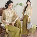 | nameOriginal | Ethnic Style New Chinese Style Improved Cheongsam Two-piece Set Women's Summer Retro Hanfu V-neck Printed Buckle Cardigan Trendy Culottes |