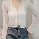 العرقية نمط ريترو ميدي فستان الربيع والصيف جديد طويل الأكمام عادية الكروشيه مشبك قميص خارجي واقية من الشمس المرأة