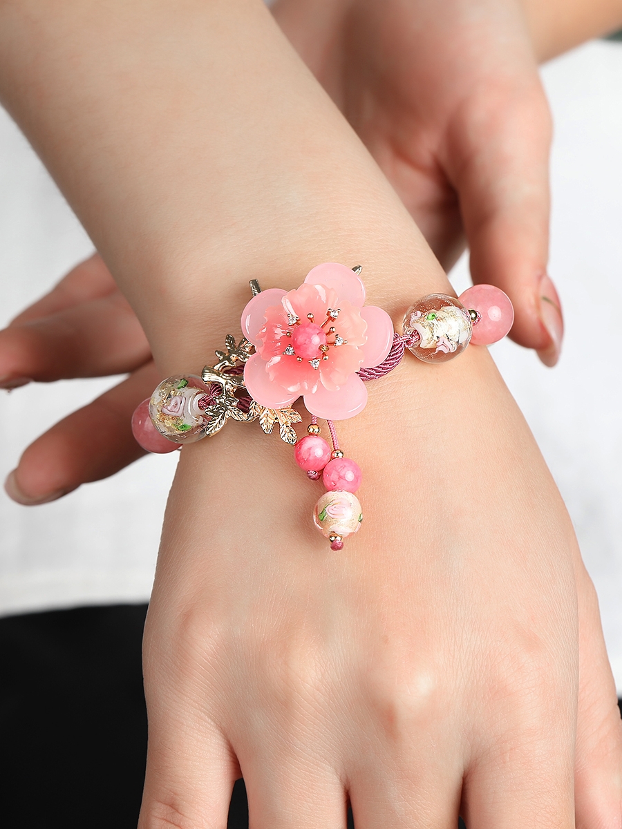 | nameOriginal | Ethnic style sterling silver large size bracelet pink large antique style bracelet temperament wrist accessories glass beads for women |
