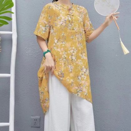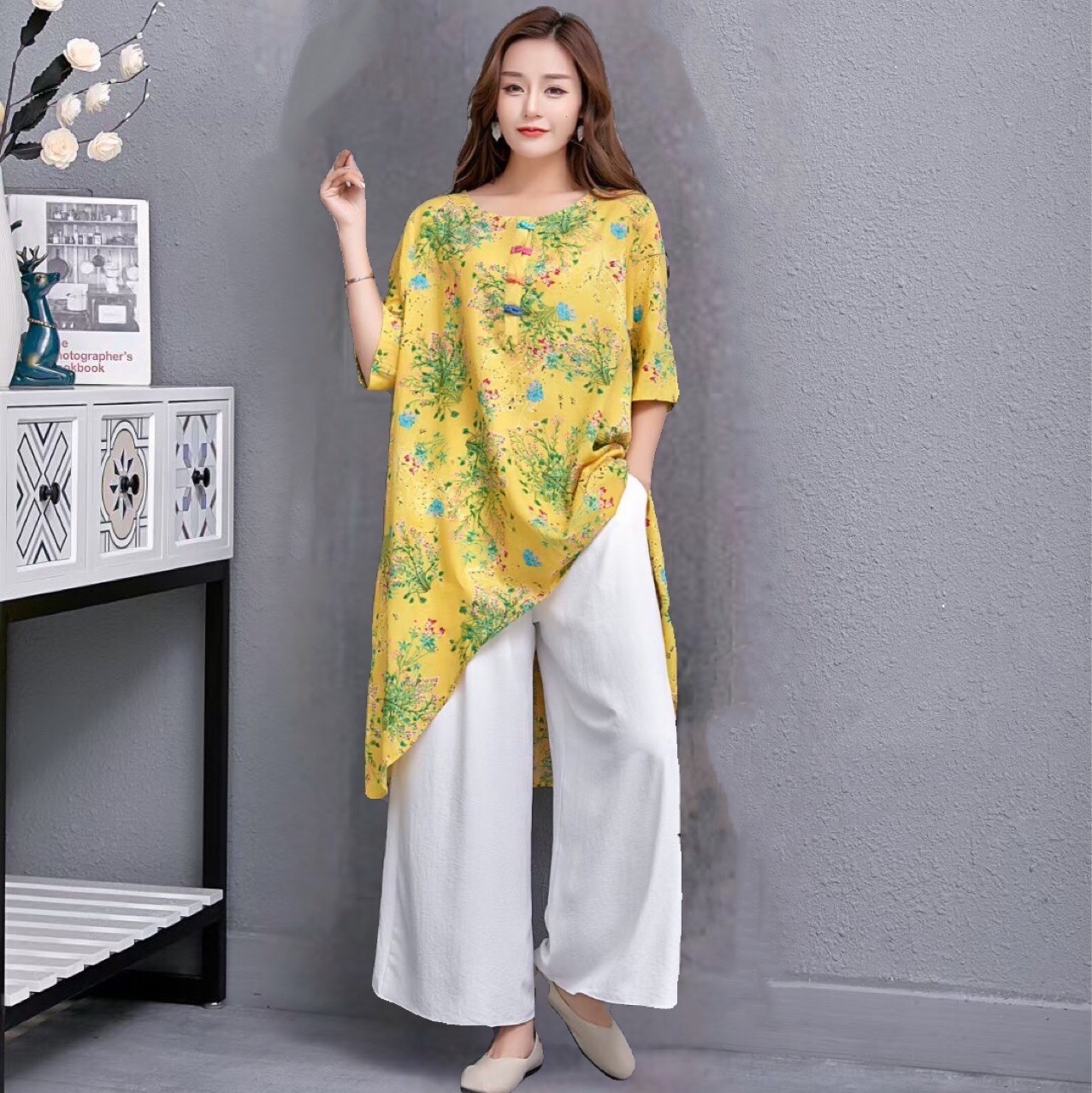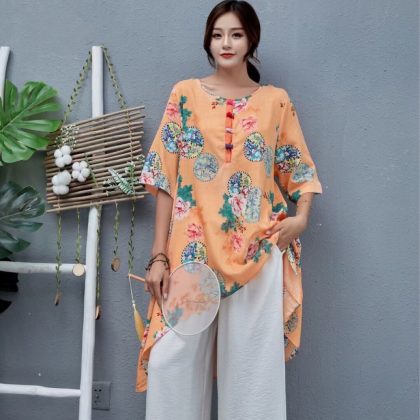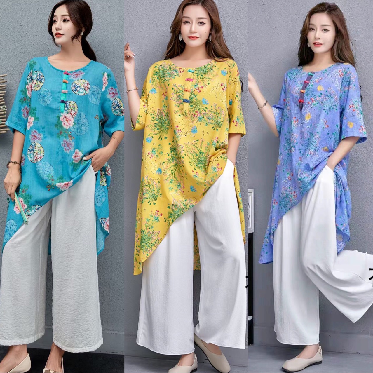 | nameOriginal | Ethnic Style Women's 2022 Summer New Cotton and Linen Printed Thin Women's Top Straight Leg Pants Casual Set |