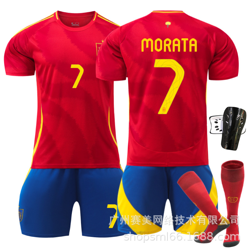 Euro 2024 Spain Home 7 Morata 16 Rodrie 19 Yamal Football Jersey suit Men's Jersey