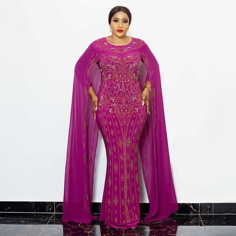 | nameOriginal | Europe, America and Africa Dress Elegant Chiffon Long Sleeve Fashion Heavy Industry Hot Drilling Bubble Bead Bag Hip Fishtail Large Size Elastic |