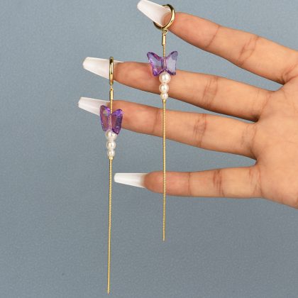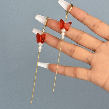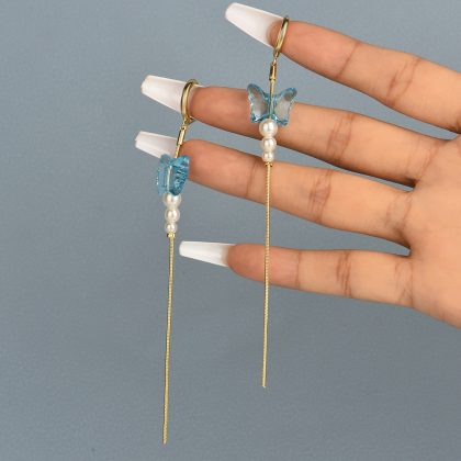 | nameOriginal | Europe and the United States cross-border new personalized fashion resin butterfly pearl ear buckle simple chain tassel earrings jewelry |