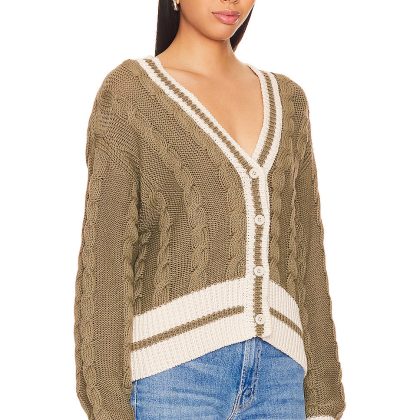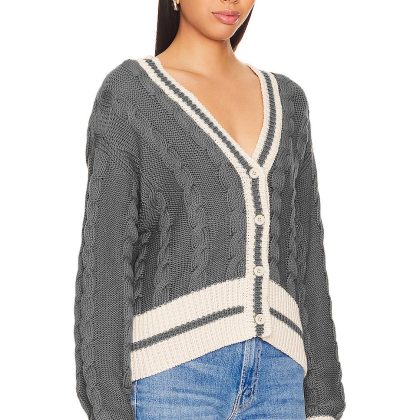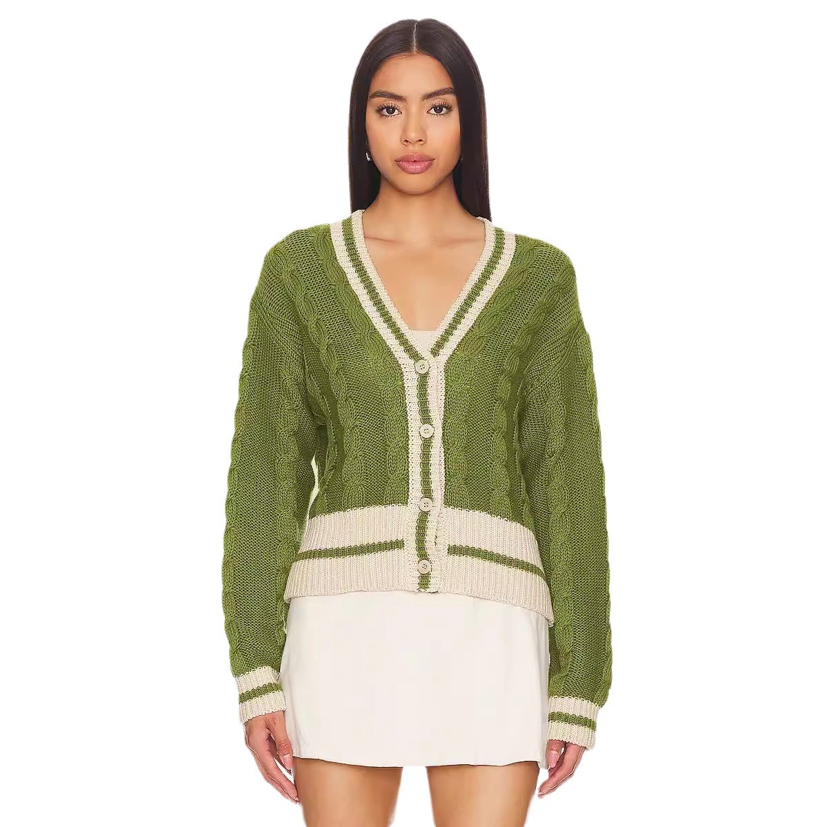 Europe and the United States cross-border V-neck color matching twist knitted cardigan women's 2024 autumn and winter loose fashion sweater coat