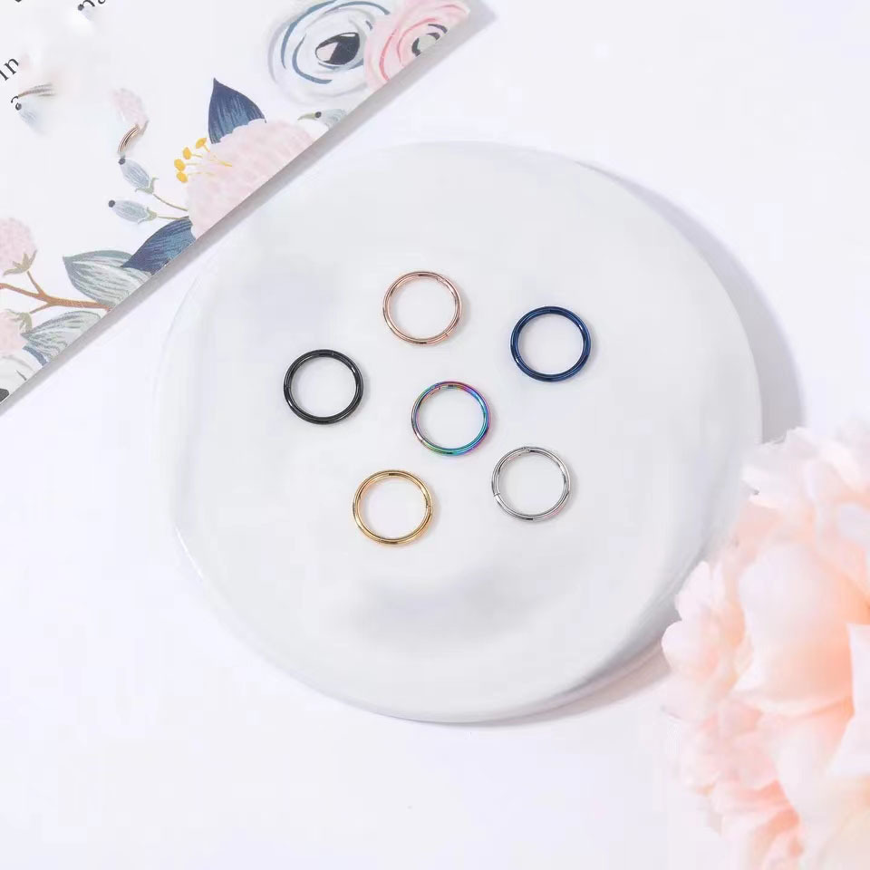 أوروبا والولايات المتحدة G23 سبائك التيتانيوم الأنف الدائري عبر الحدود الساخن سلس حلقة مغلقة حلقة بسيطة حلَق أذن الأذن العظام حلقة ثقب المجوهرات