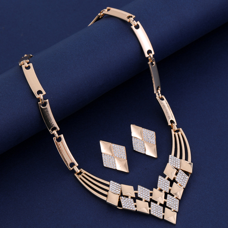 Europe and the United States hot necklace set luxury creative new diamond earrings necklace two-piece set a generation of hair