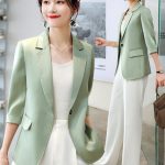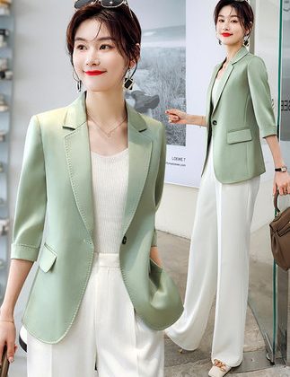 European Acetic Acid Suit Jacket Women's Summer Thin Summer Small Western Style Top Casual Small Suit Summer