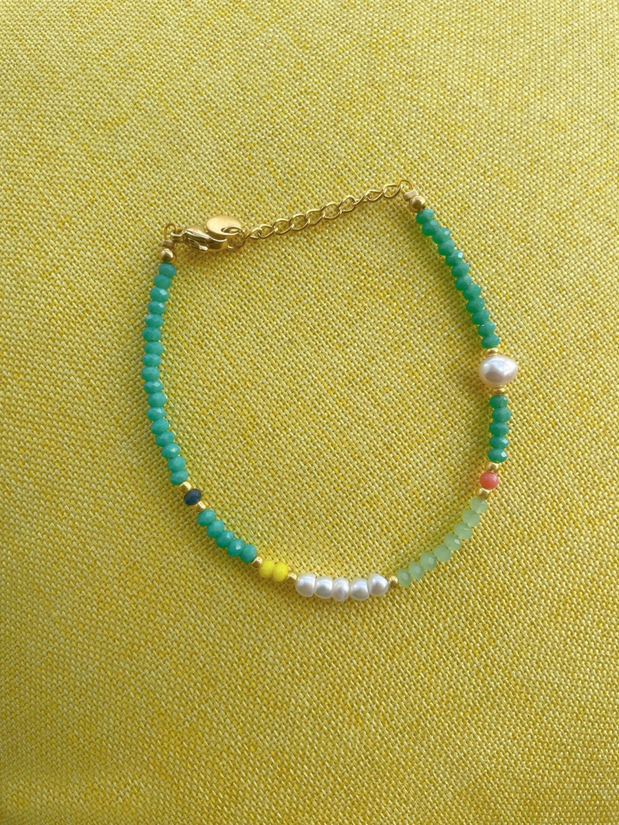 European and American 2024 spring new ins new design fresh texture crystal natural stone freshwater pearl stitching bracelet
