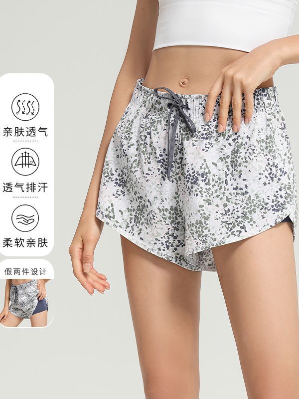 nameOriginal | European and American Alo Yoga Floral Sports Shorts Women's Anti-walking Fake Two-piece Loose Breathable Running Fitness Yoga Pants |