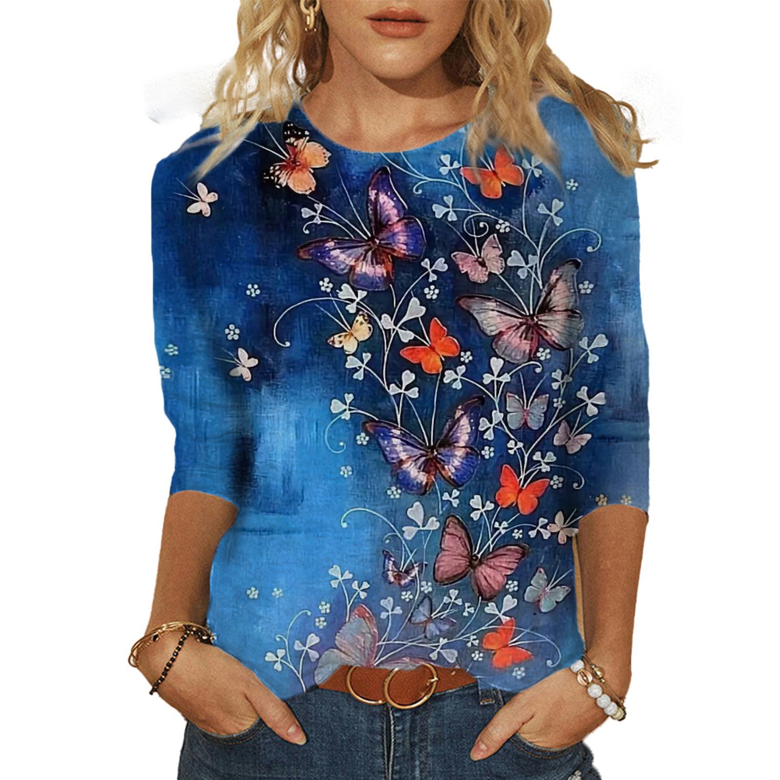 | nameOriginal | European and American Amazon New Retro Pullover Long Sleeve Printed Loose Crewneck T-shirt Long Sleeve Women's Seven-point Sleeve |