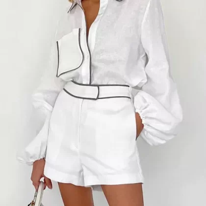 | nameOriginal | European and American casual cotton and linen black and white contrasting long-sleeved shirts |