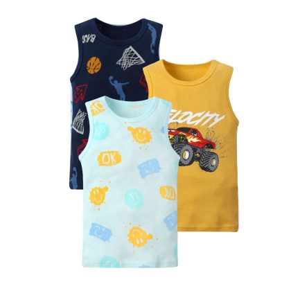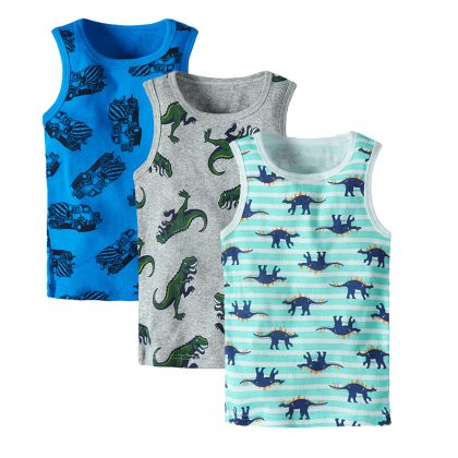 European and American Children's Vest Summer Cotton Dinosaur Cartoon Baby Sleeveless I-Shirt Cross-Border