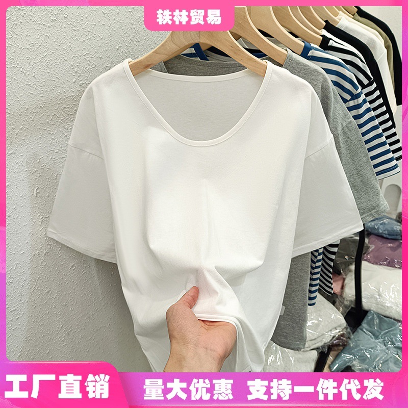 قميص نسائي صيفي فضفاض بنصف كم بياقة أوروبية وأمريكية يناسب كل مباراة التخسيس بتصميم هونج كونج بأكمام قصيرة