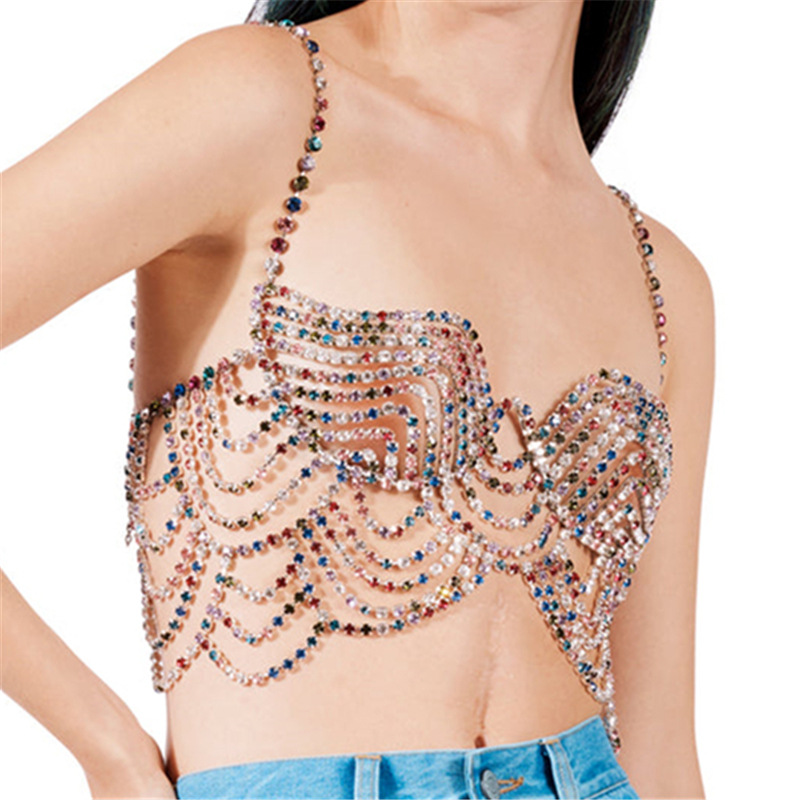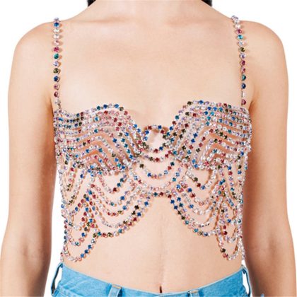 | nameOriginal | European and American corrugated rhinestone chest chain sexy Crystal mixed color bra bikini beach body accessories body chain |