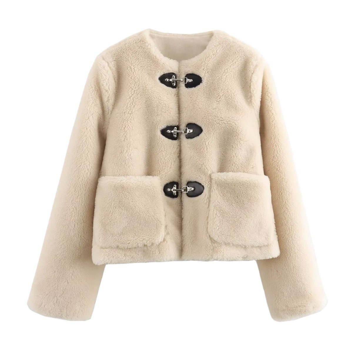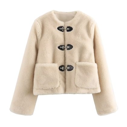 | nameOriginal | European and American Cross-border 2024 Fresh and Sweet Style Fashionable Two-color Spring Buckle Fleece Jacket Loose and Comfortable Round Neck for Women |