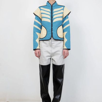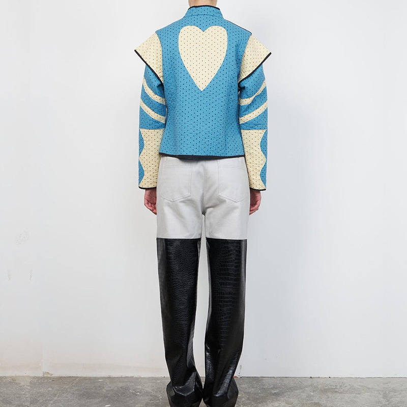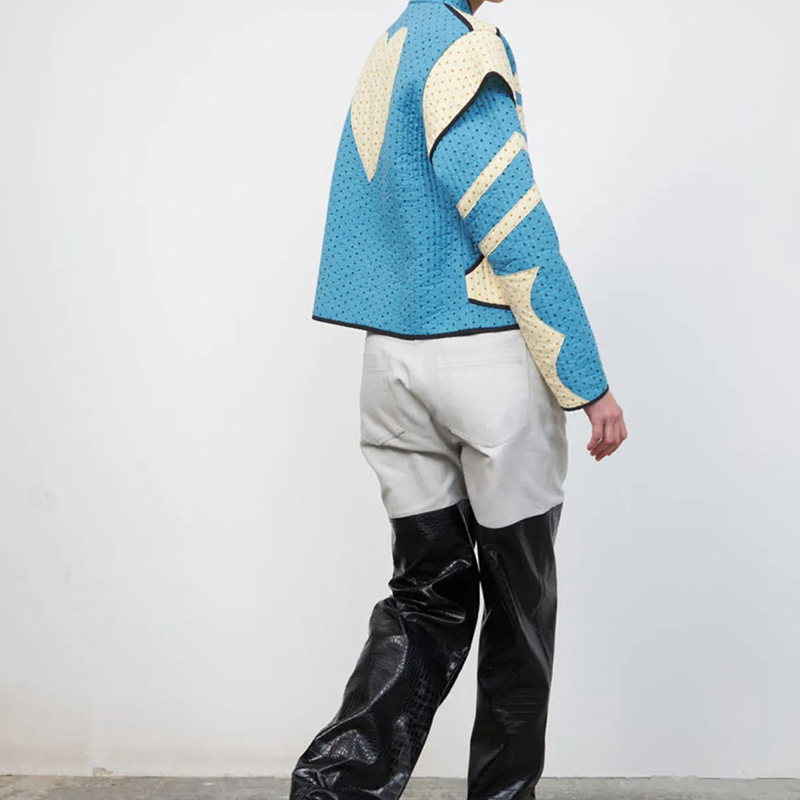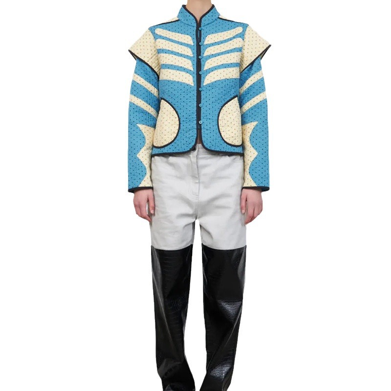 | nameOriginal | European and American Cross-border 2024 New Blue Polka Dot Black and White Line Jacket Single Row Multi-button Multi-pocket Jacket |