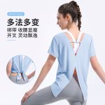 | nameOriginal | European and American cross-border cool yoga T-shirt women's loose hip-covering beauty back fitness top back split sports short blouse |