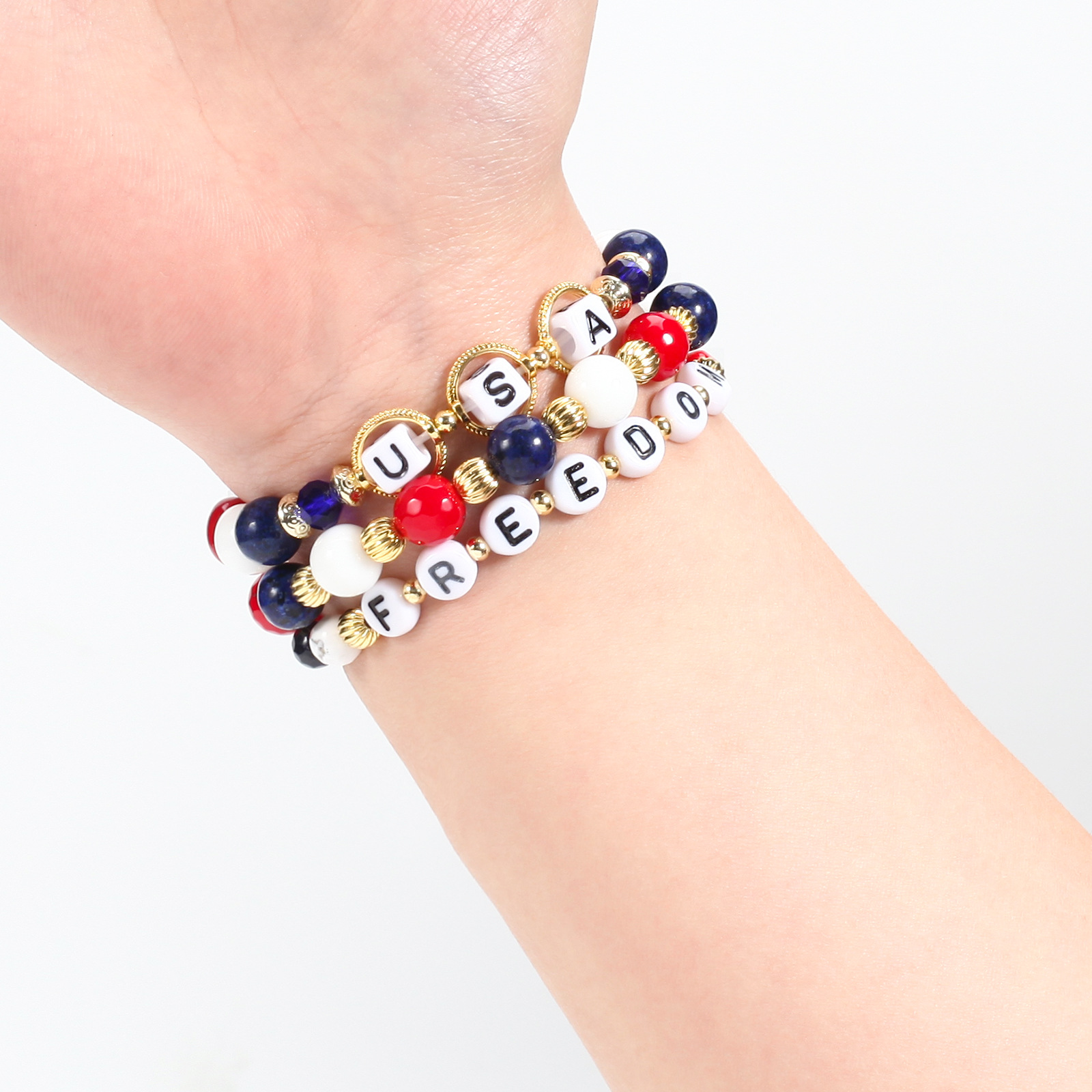 | nameOriginal | European and American cross-border exclusive American Independence Day bracelet bracelet suit natural stone beaded letters USA in stock wholesale |