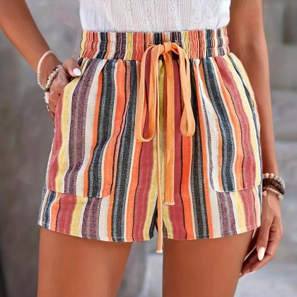| nameOriginal | European and American Cross-border Foreign Trade Striped Printed Pocket Lace-up Rubber Waist Ethnic Style Women's Shorts |