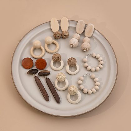 | nameOriginal | European and American Cross-border Geometric Wooden Earrings Retro Simple Round Colorblock Earrings Hollow-out Wooden Tassel Earrings |