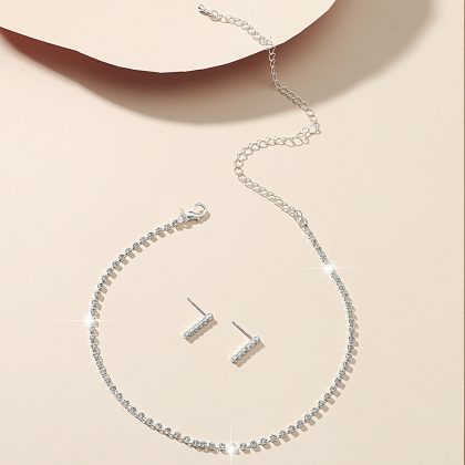 | nameOriginal | European and American cross-border hot sale diamond shiny necklace earrings two-piece wedding banquet dress accessories fashion jewelry suit |