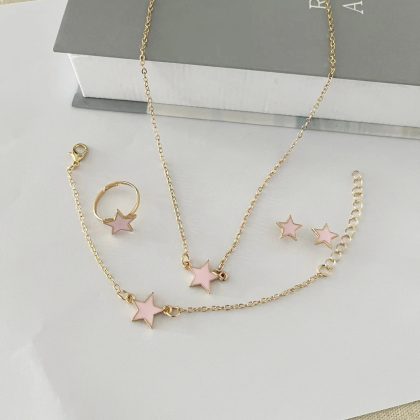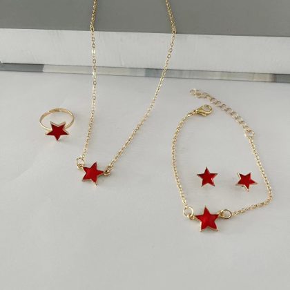 | nameOriginal | European and American Cross-border Hot Selling Four-piece Jewelry Simple Watch Accessories Alloy Five-pointed Star Necklace Bracelet Earrings Ring |