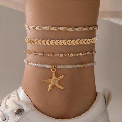| nameOriginal | European and American cross-border jewelry handmade DIY rice beads shell multi-layer anklet chain scallop anklet 5-piece set for women |