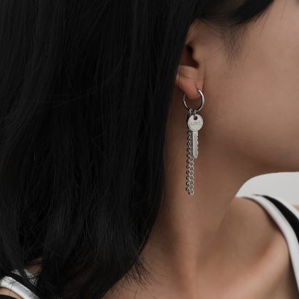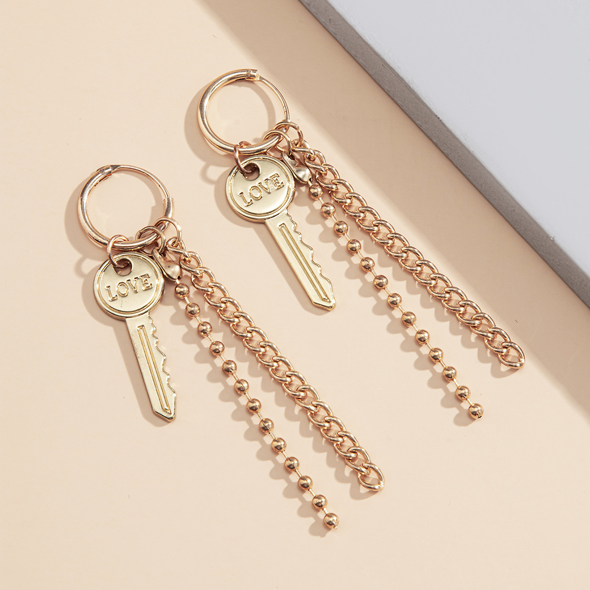 | nameOriginal | European and American cross-border jewelry hip hop simple chain earrings female creative retro fashion key pendant earrings |