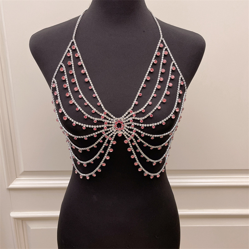 | nameOriginal | European and American cross-border new accessories rhinestone hollow mesh claw chain body chain sexy bikini bra necklace |
