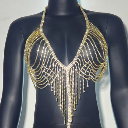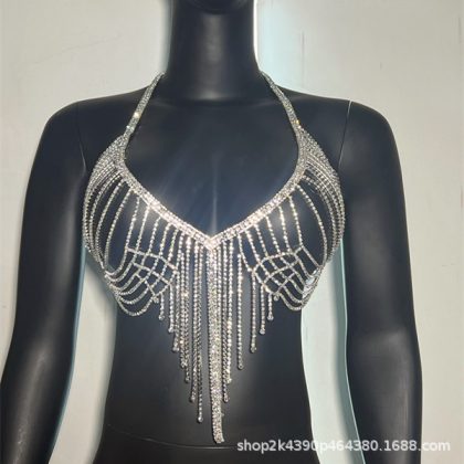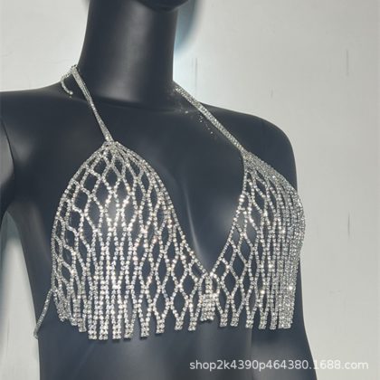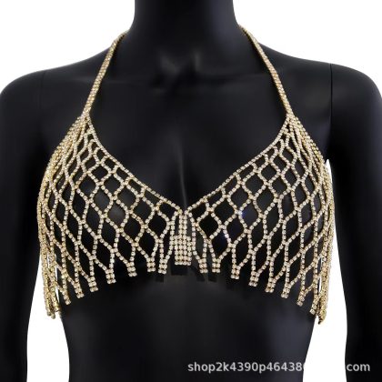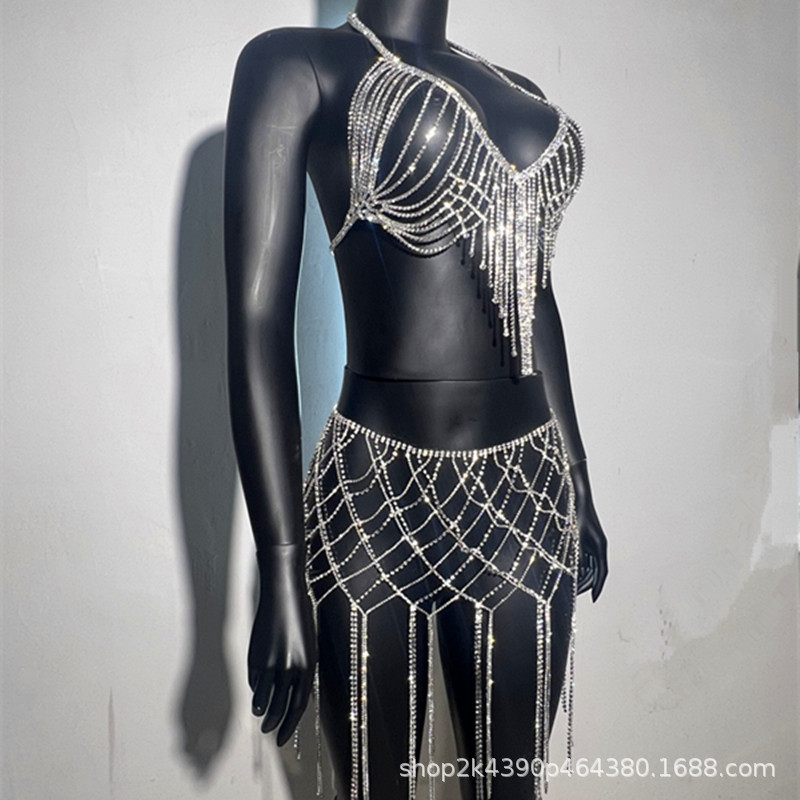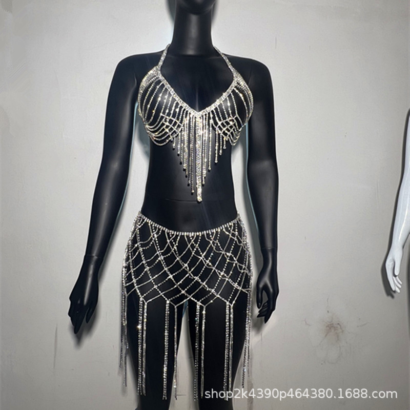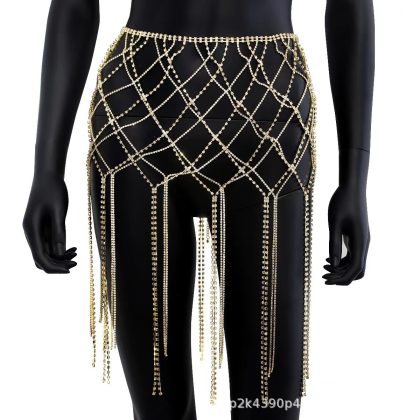 European and American Cross-border New Mesh Waist Tassel Rhinestone Shiny Innovation Exaggerated Body Chain Bikini Beach Accessories