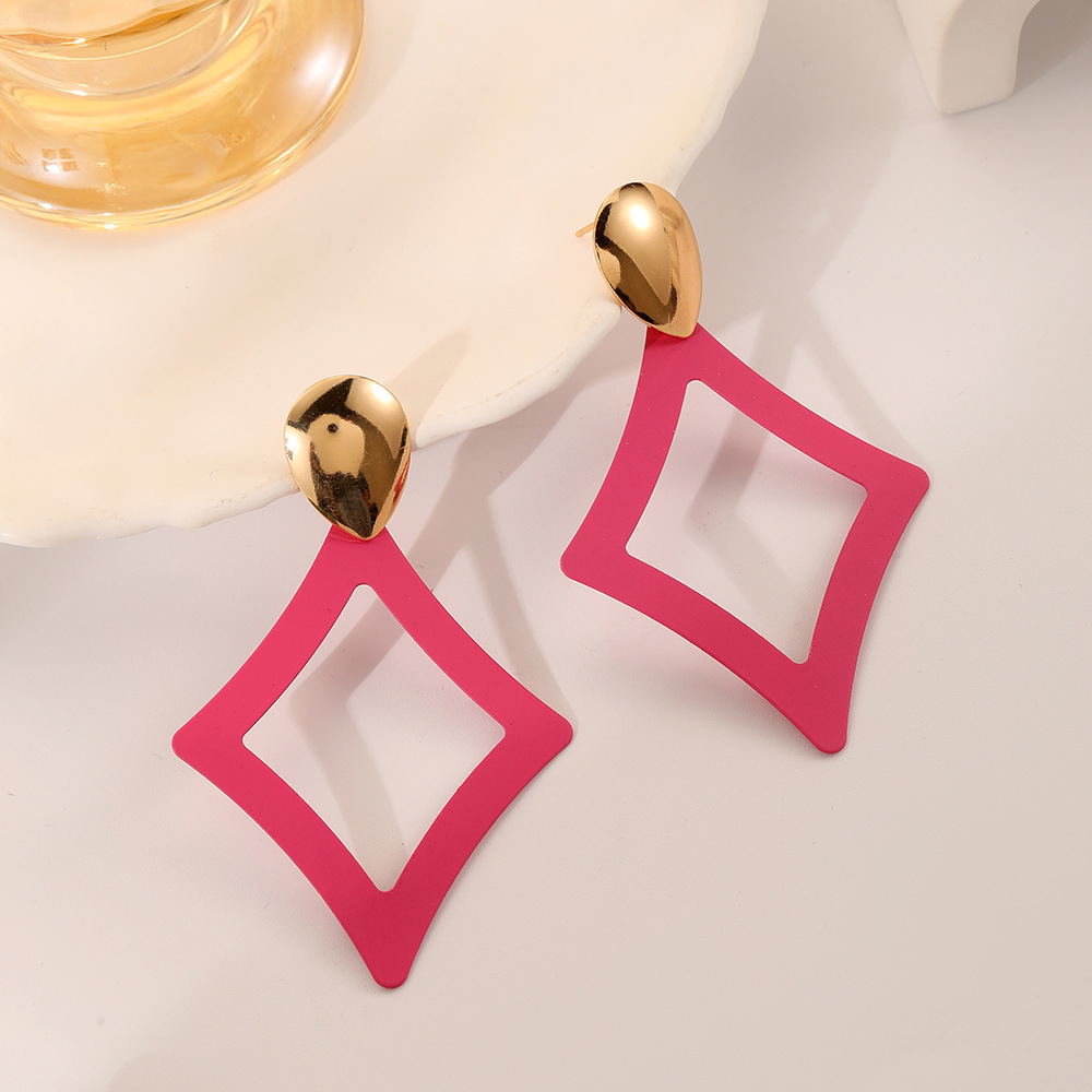 European and American cross-border new simple exaggerated fashion geometric earring color spray water drop diamond-shaped earrings
