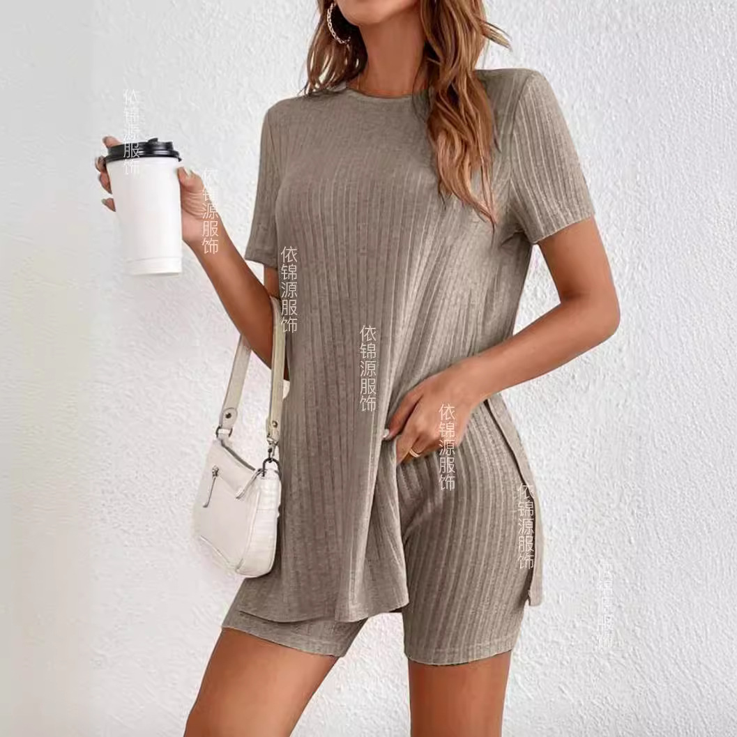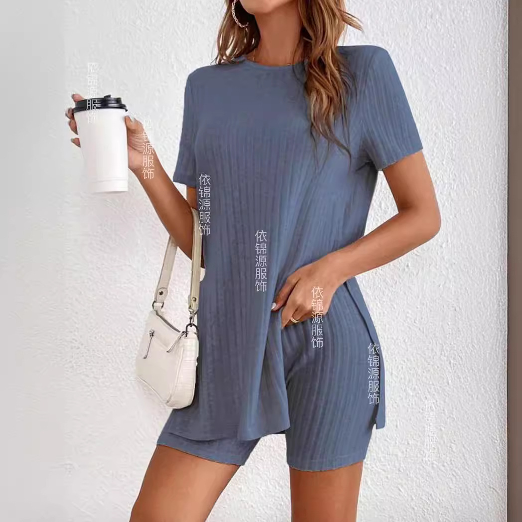 | nameOriginal | European and American cross-border women's clothing 2024 spring new solid color casual round neck split home wear outer wear suit |