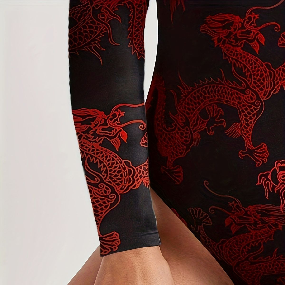 European and American cross-border Women's round neck long sleeve fashion sexy dragon-shaped printed tight hot girl style jumpsuit top