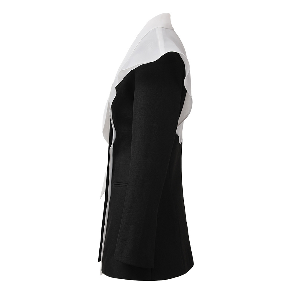 European and American Design Sense Deconstructed Contrast Color Stitching Suit Women's Autumn New Cloak Waistline Personalized Commuter Jacket