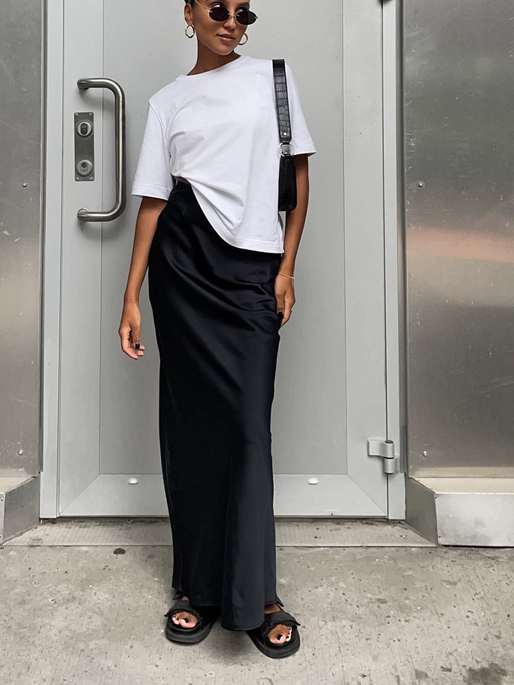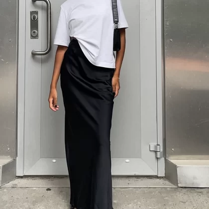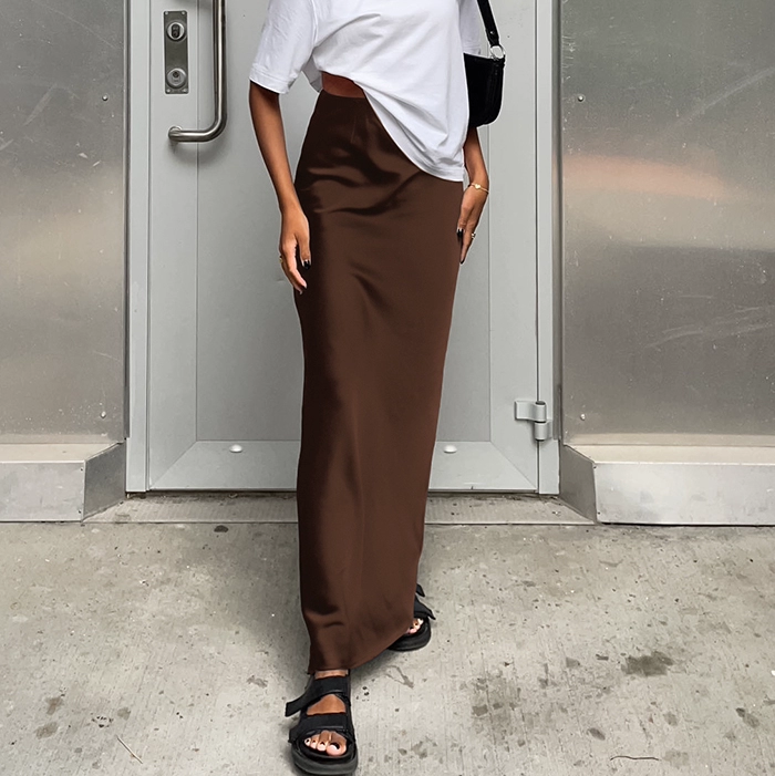 تنورة حريرية ولطيفة من الساتان الصيفي الأوروبي والأمريكي
