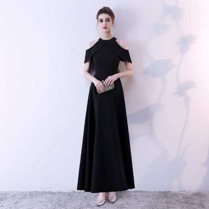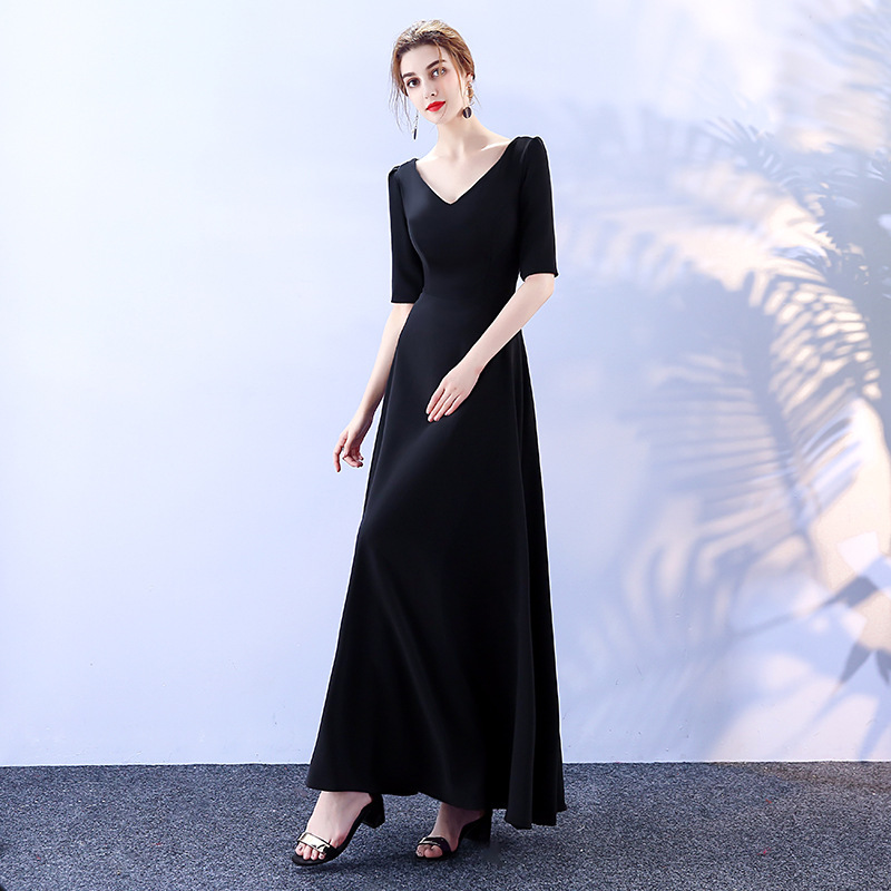 European and American Evening Dress 2024 New Slimming Party Host dress Black Long Choral Performance Dress