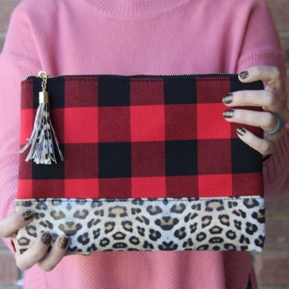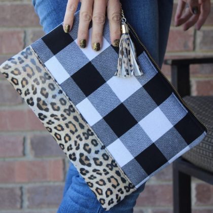 European and American explosive Plaid leopard stitching clutch bag