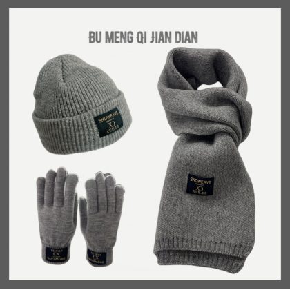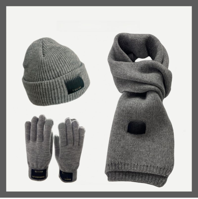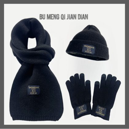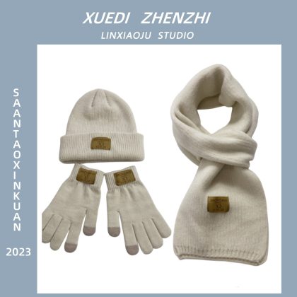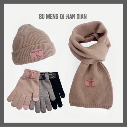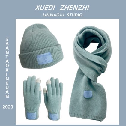 nameOriginal | European and American fashion thick wool three-piece set for autumn and winter solid color warm pullover wool hat scarf gloves set |