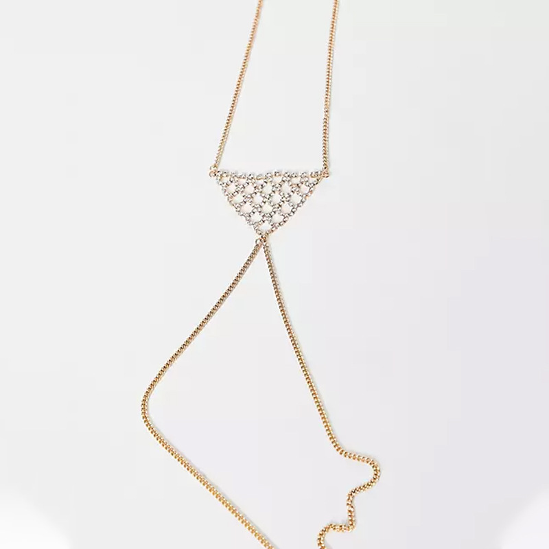 | nameOriginal | European and American Fashion Triangle Hollow Rhinestone Chest chain Simple Pendant Sexy Chest chain Body chain |